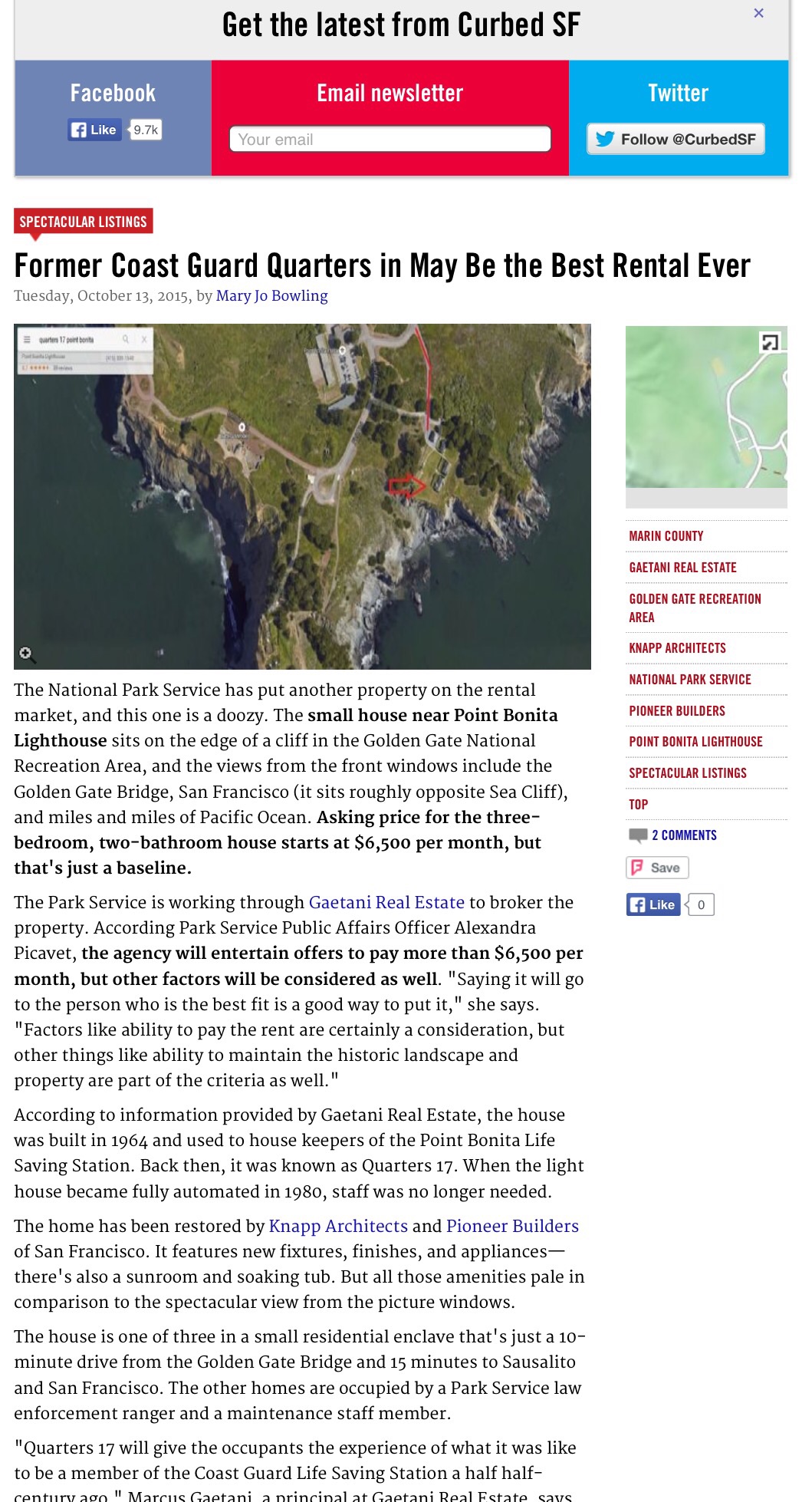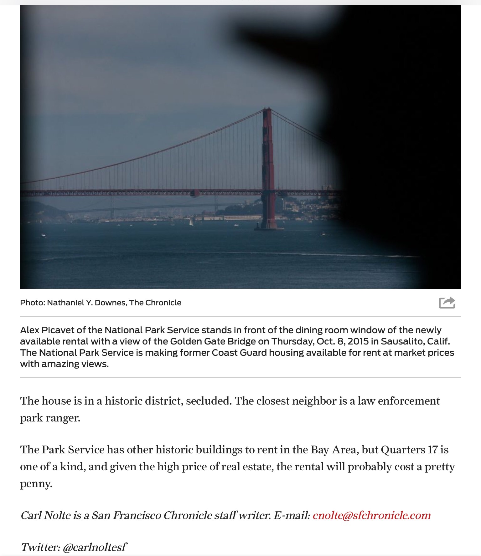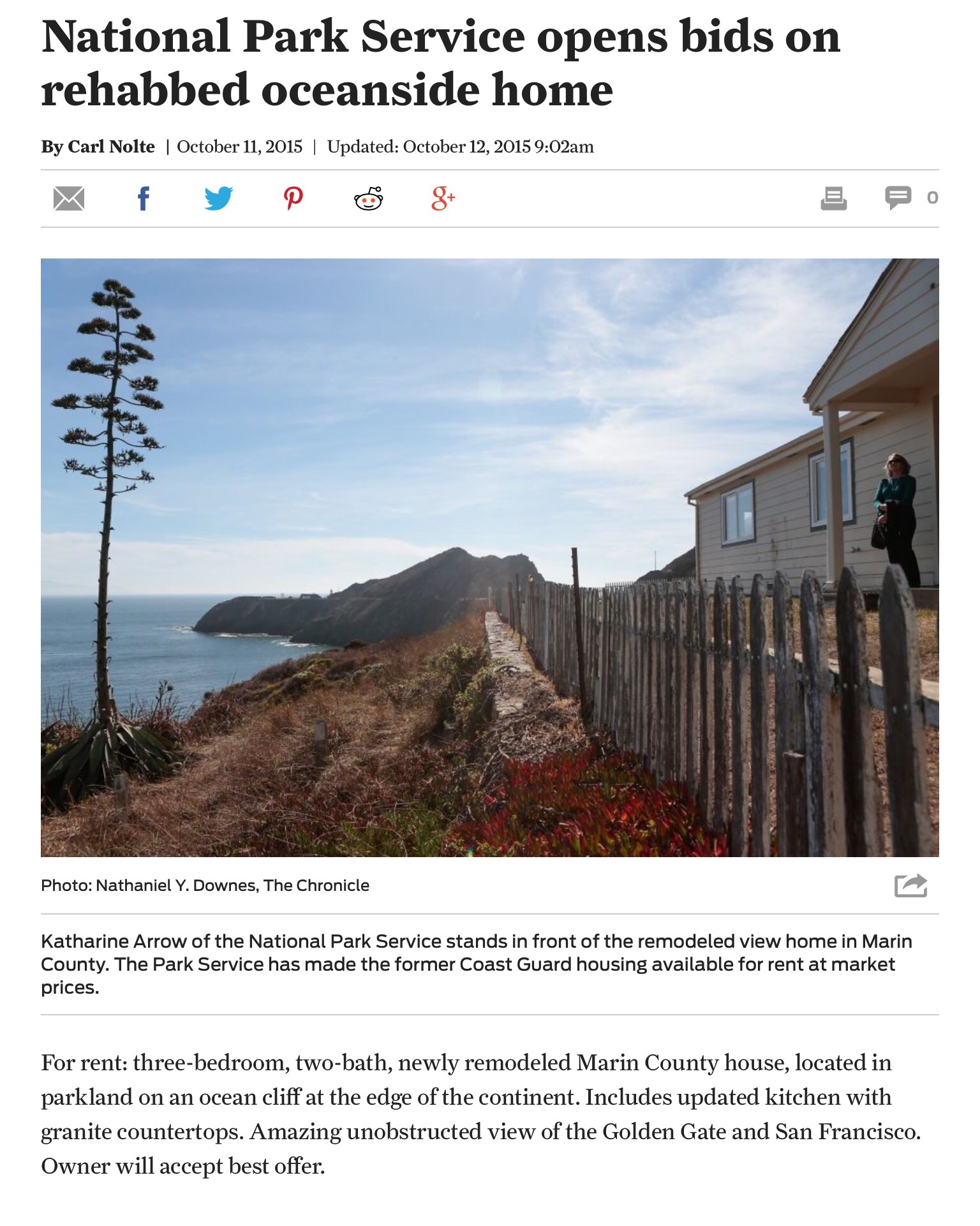 We got some great press from the Point Bonita home for rent! Katharine was featured on the front page in the San Francisco Chronicle and the Marin IJ and in other publications.